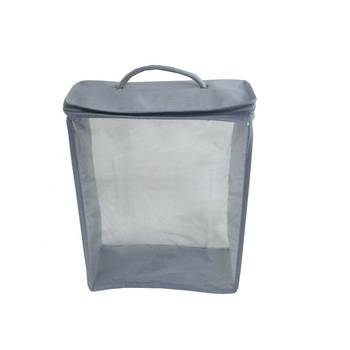 حقيبة تخزين منزلية مخصصة من البلاستيك الشفاف والقماش غير المنسوج الأسود مع مقابض وسحاب